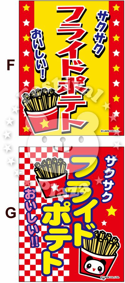 他の画像を見る 「目立ってなんぼですわ」可愛くて 目立つ お手軽価格吊り下げ旗 つり下げ旗 吊下げ旗 『フライドポテト』 吊り下げ旗サイズ:約35cm×45cm { ポテトフライ }{ 子供会 景品 お祭り くじ引き 縁日 屋台 夏祭り 幼稚園 保育園 夜店 露店 夕涼み会 納涼祭 イベント 文化祭 学園祭 自治会 町内会 }[24B06] メーカー希望小売価格 オープン価格 のところ 当店特別価格 ¥ 550 税込 カートに入れる お気に入りに登録する