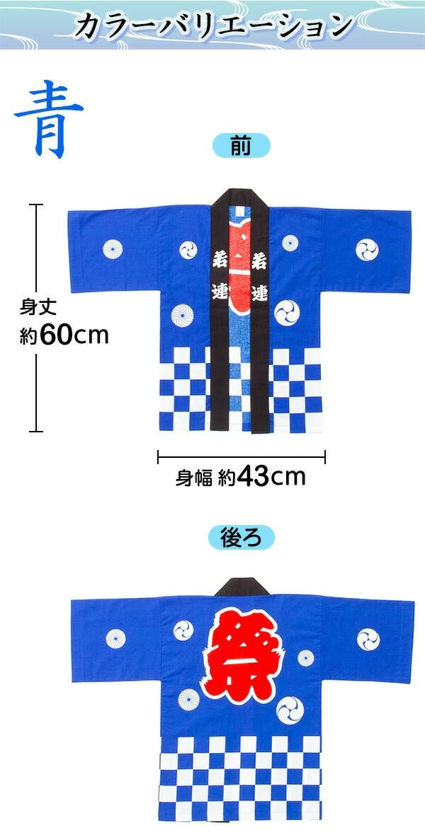 他の画像を見る お祭り はっぴ 半被 法被 はんてん 半纏 国産良品お祭りはっぴ 市松柄 子供 110cm (帯、豆絞りお祭り手拭付) { お祭り はっぴ 半被 法被 はんてん 半纏 }{ 縁日 夏祭り 子供会 町内会 自治会 幼稚園 保育園 文化祭 学園祭 イベント 景品 くじ引き }[24F05] メーカー希望小売価格 ¥ 5,280 のところ 当店特別価格 ¥ 2,362 税込 カートに入れる お気に入りに登録する