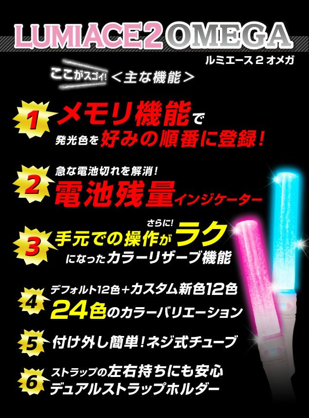 他の画像を見る 約42%OFF!!商品到着後レビューを書くと、ルミカ スペアチューブ(お1人様1個まで) プレゼント! ルミカ ルミエース2 Ω オメガ カラーチェンジ24色 カラーリザーブ (電池LED) { ルミカライト 電池式 ペンライト LED 光るおもちゃ }{ ライブ フェス コンサート アイドル 結婚式 二次会 パーティーグッズ }[SKB][25B10][omk4967574308535omk][dmo]{即日出荷 配送区分D} メーカー希望小売価格 ¥ 3,630 のところ 当店特別価格 ¥ 2,100 税込 在庫切れ 詳細を見る お気に入りに登録する