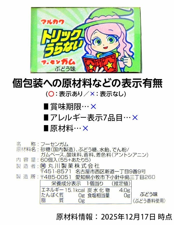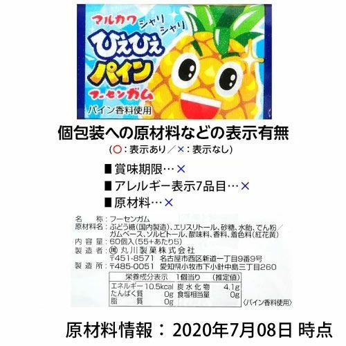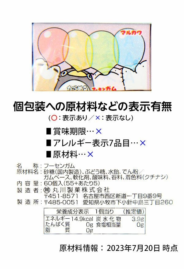 他の画像を見る 1個あたり10.2円(約11円税込)x55個入=561円(606円税込) マルカワ 角型ガム 55個入 { 駄菓子 お菓子 }{ おかし 駄菓子 おやつ キャラクター ガム 子供会 景品 お祭り 縁日 問屋 }[25L11][dmo] メーカー希望小売価格 ¥ 713 のところ 当店特別価格 ¥ 606 税込 カートに入れる お気に入りに登録する
