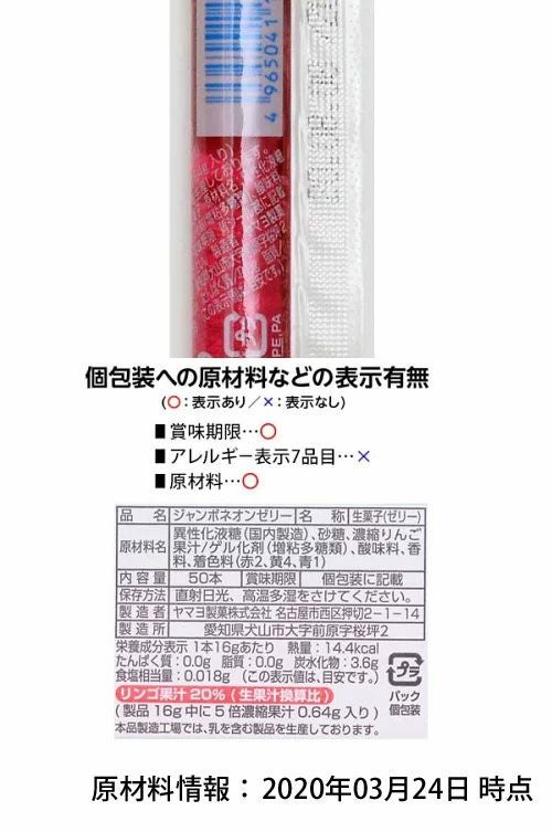 他の画像を見る 1個装あたり約12.7円(約13.8円税込)x50個装入=637円(688円税込) フルーツ棒ゼリーシリーズ 50個装入 { 駄菓子 フルーツゼリー }{ お菓子 子供会 景品 お祭り くじ引き 縁日 販促 配布 夏祭り 幼稚園 保育園 問屋 }[23B06] メーカー希望小売価格 オープン価格 のところ 当店特別価格 ¥ 688 税込 カートに入れる お気に入りに登録する