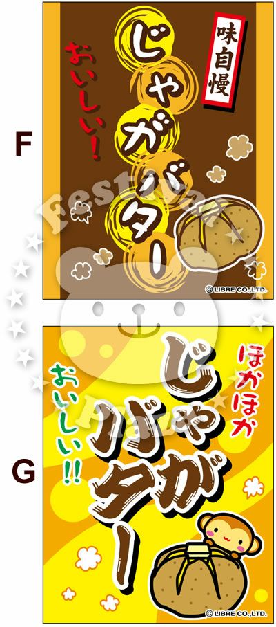 他の画像を見る 「目立ってなんぼですわ」可愛くて 目立つ お手軽価格 吊り下げ旗 『じゃがバター』 吊り下げ旗 サイズ:約35cm×45cm { つり下げ 幕 }{ 子供会 景品 祭り くじ引き 縁日 屋台 幼稚園 保育園 イベント 文化祭 学園祭 }[24B06] メーカー希望小売価格 オープン価格 のところ 当店特別価格 ¥ 550 税込 カートに入れる お気に入りに登録する