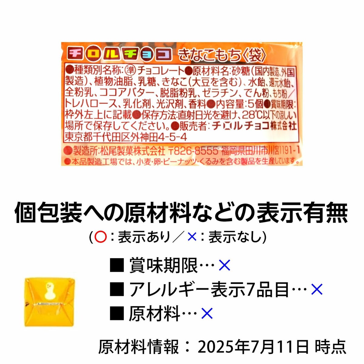 他の画像を見る 単価85円(91.8円税込)x10袋入=850円(918円税込) チロル ちょこもち袋 10袋入 { 駄菓子 お菓子 チロルチョコ 和菓子 もち 餅 配布 イベント }{ 子供会 景品 人気 子供 お祭り 縁日 イベント くじ引き 福引き おかし おやつ 配布 }[25G22][dmo]{即日出荷 配送区分D} メーカー希望小売価格 ¥ 1,080 のところ 当店特別価格 ¥ 918 税込 販売期間 2025/08/30 19:00 〜 2026/02/28 0:00 カートに入れる お気に入りに登録する