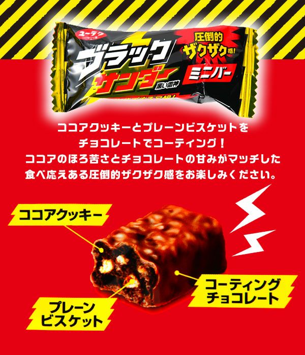 他の画像を見る 圧倒的ザクザク感!一度食べると止まらぬおいしさ 有楽製菓 ユーラク ブラックサンダー ミニバー 139g { 駄菓子 お菓子 チョコ チョコレート チョコスナック }{ おかし おやつ 子供会 景品 問屋 人気 子供 こども お祭り 縁日 イベント パーティー 配布 個装 個包装 }107[25H05][dmo] メーカー希望小売価格 ¥ 324 のところ 当店特別価格 ¥ 275 税込 詳細を見る お気に入りに登録する