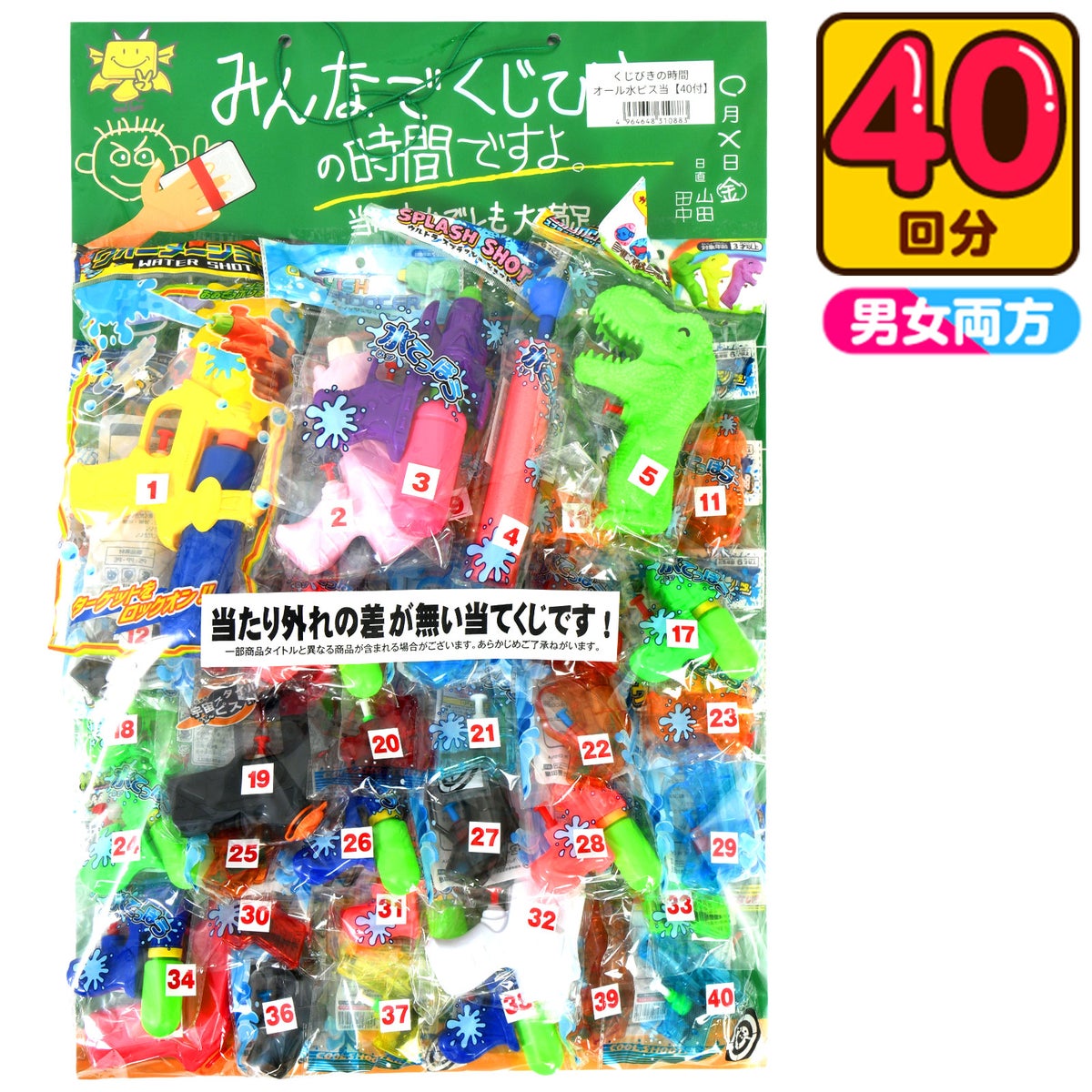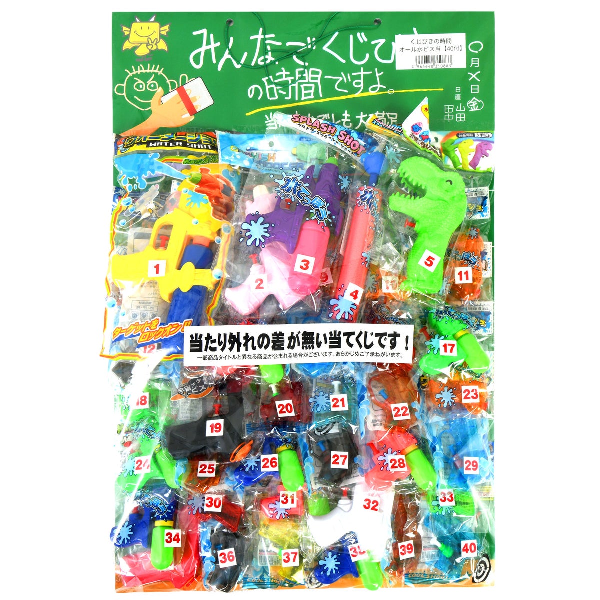 他の画像を見る 当てくじ水鉄砲がたくさんついた当てくじ オール ぜんぶ 水ピス当て 100円×40回 { 当てくじ 水鉄砲 水ピストル 水遊び ウォーターガン 公園 }{ くじ くじ引き おもちゃ 景品 子供会 縁日 お祭り 問屋 保育園 幼稚園 子供 パーティー イベント プレゼント }[26D03] メーカー希望小売価格 オープン価格 のところ 当店特別価格 ¥ 3,280 税込 在庫切れ 再入荷お知らせ お気に入りに登録する