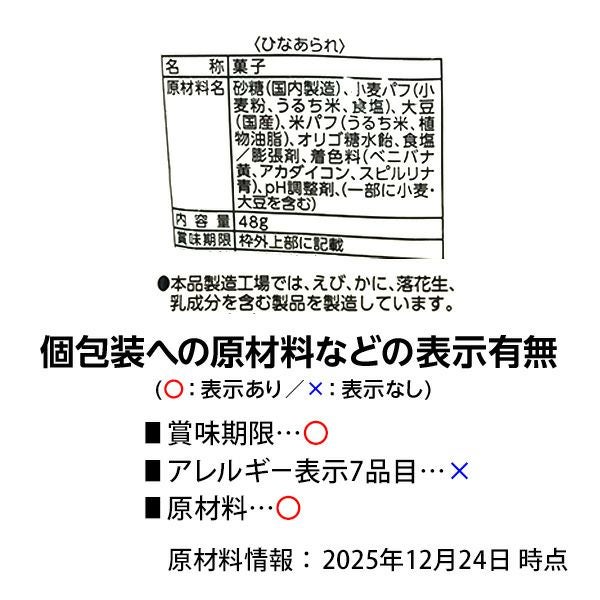 他の画像を見る 1個装あたり40円(43.2円税込)x40個装入=1600円(1728円税込)少量入りでひな祭りの配布用にちょうど良い! アリックス ひなあられ 6g 40個装入 { 駄菓子 雛あられ 個装 配布 女の子 お祝い パーティー 個包装 }{ ひな祭り ひなまつり 桃の節句 子供会 景品 販促品 配布 }[26A13][dmo] メーカー希望小売価格 オープン価格 のところ 当店特別価格 ¥ 1,728 税込 販売期間 2026/01/16 19:00 〜 2026/05/15 0:00 カートに入れる お気に入りに登録する