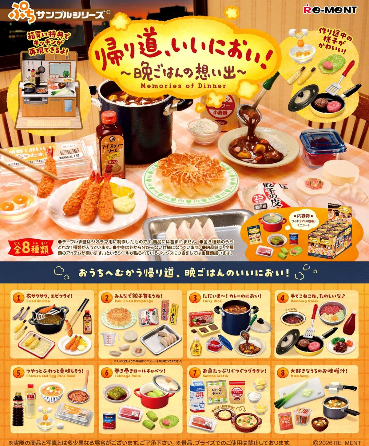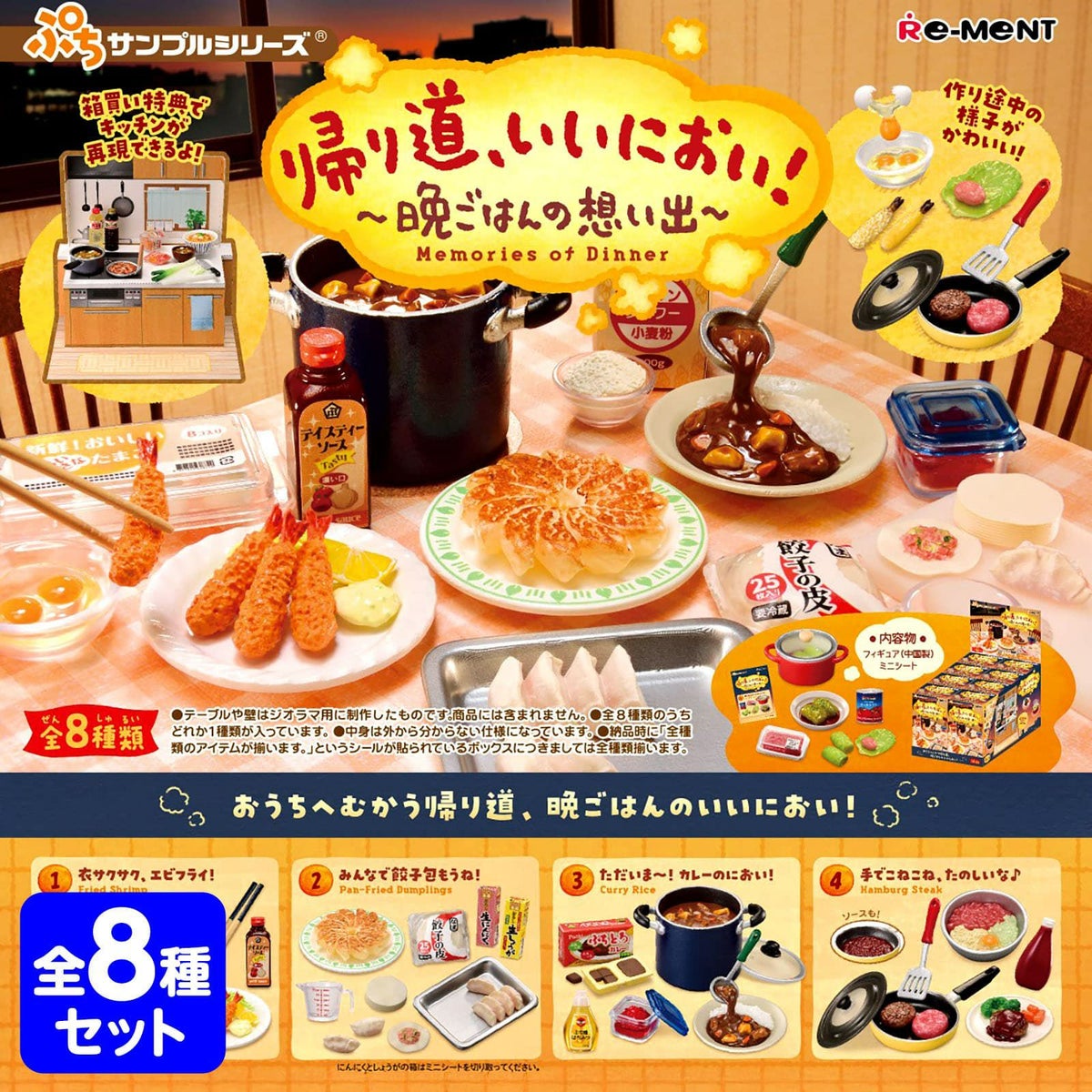 他の画像を見る 1個装あたり665円(731.5円税込)x8個装入=5320円(5852円税込)全8種 コンプリート(全種類のアイテムが揃います。) リーメント 帰り道、いいにおい!~晩ごはんの想い出~ 8個装入 { 食玩 景品玩具 懐かしい 食事 メニュー }{ おもちゃ オモチャ 玩具 フィギュア コレクション コンプリートセット ギフト プレゼント }[26B18][dmo]{即日出荷 配送区分D} メーカー希望小売価格 ¥ 8,360 のところ 当店特別価格 ¥ 5,852 税込 カートに入れる お気に入りに登録する