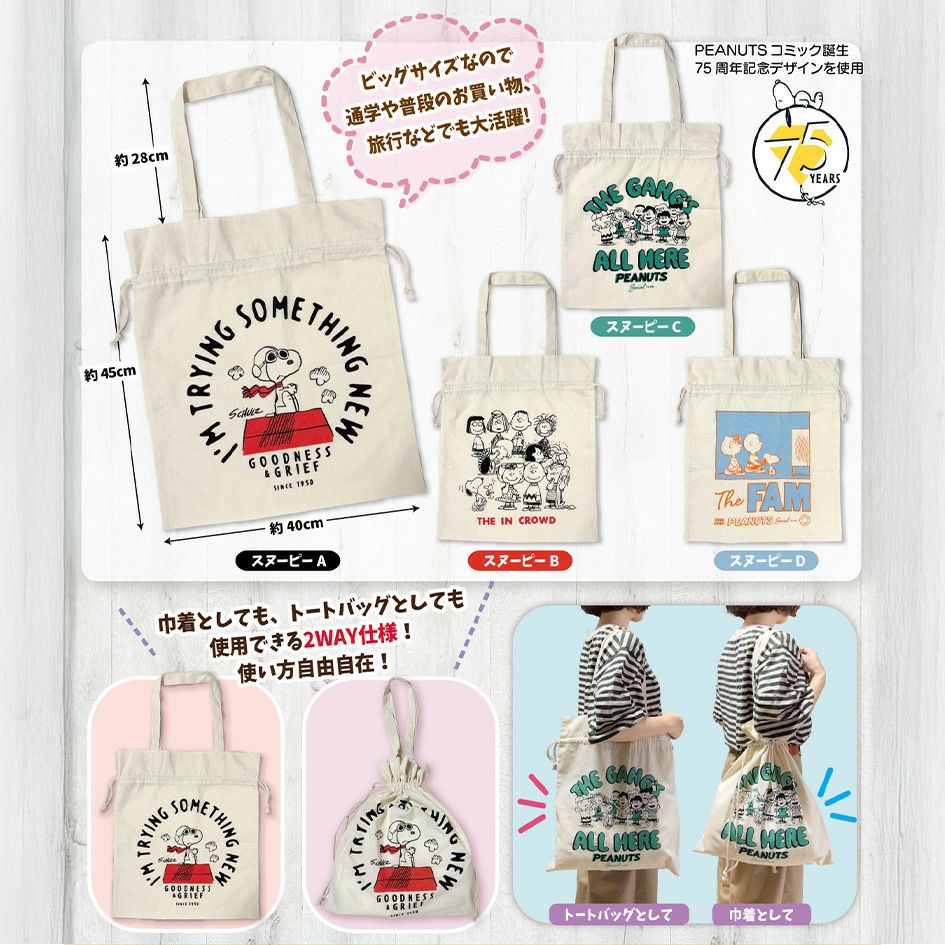 他の画像を見る 2WAYで楽しめる☆ 使い勝手の良いキャンバス地バッグ スヌーピー 帆布 2Way トートバッグ ver.5 { トート バッグ 巾着 肩掛けバッグ サブバッグ お買い物バッグ 人気 }{ キャラクター グッズ かわいい 雑貨 ギフト プレゼント }[25I26] メーカー希望小売価格 オープン価格 のところ 当店特別価格 ¥ 415 税込 カートに入れる お気に入りに登録する